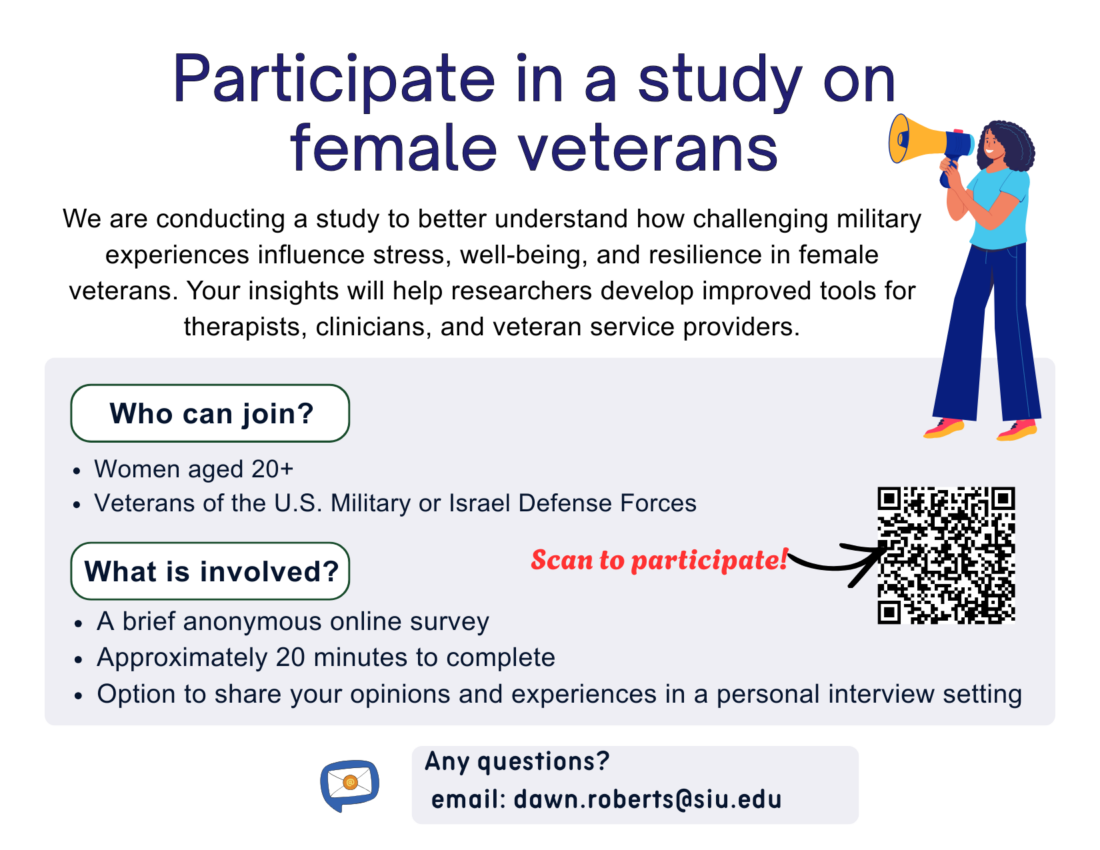 This study explores how female veterans experience stress, moral injury, and resilience. Using interviews and survey-based data collection, the project aims to identify the individual, social, and structural factors that shape mental health, adaptive coping, and long-term well-being for women who have served. The findings will help inform more effective, gender-responsive supports and interventions for female veterans.